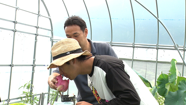 そして今では、ハスの花のレンタルによって地域の景観づくりにも貢献。町を可憐に彩る手腕と、地元の人々とのつながりに工藤が迫ります。