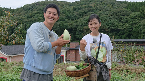 今回の「農業始めちゃいました」は、2週連続スペシャルの後編! BS日テレ「なおみ農園」とのコラボ企画として、工藤がセンパイ俳優・財前直見さんの“農ある暮らし”に迫ります。 大分県杵築市。財前さんは18年前から、仕事の時以外はこの地で家族と農ライフを送っています。俳優としての輝かしいキャリアよりも、子育てを機に移住を選んだ理由、そして大切な家族への思いとは? また畑での伝統野菜の収穫や、自家製ジュースを味わいながら、財前さんの丁寧な暮らしに込めた思いをひもときます。 さらに、種菌を植え付けた「原木シイタケ」の榾木(ほだぎ)を両番組のスタッフが力を合わせ移動させるなどの展開も!? 最後は、釜で炊いた「むかごと栗の炊き込みご飯」と「だんご汁」を堪能します。
