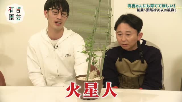 今回は、園芸大好き芸人の納言・安部紀克さんと我が家・坪倉由幸さんが登場。それぞれが手塩にかけて育てた自慢の植物を有吉さんに見てもらう企画です。園芸歴4年の安部さんと、園芸歴4カ月の坪倉さん、それぞれのこだわりが詰まった植物部屋も大公開。さらに、番組オリジナル「有吉パンジー」企画の続報もお届けします。