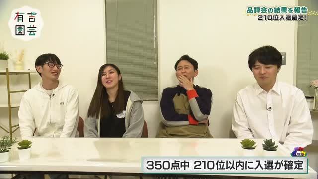 品評会会場を訪れたのは、納言のふたり。まずは入選を逃した「選外品」が置かれる場所を確認しますが、そこに「文晁 有吉弘行」はありませんでした。これで、出品された約350点の中から210位以内への入選が確定。さらに、会場奥の金屏風の前に飾られるのは、特別賞が確定したベスト16の万年青。納言のふたりが16位から順に確認していくと、次々と有吉さんのものではないことが判明し、期待はどんどん膨らんでいきます。