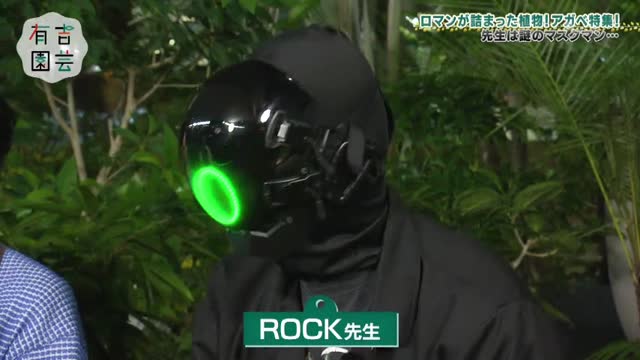 坪倉さんにアガベの魅力を教えたアガベ専門店のオーナー、ROCK先生が登場。当初は「主役は植物で自分は黒子」というポリシーから、顔を隠す謎のマスクマン姿で現れましたが、「言われたら何でもします」と、有吉さんの「外してください」というリクエストにあっさり素顔を公開。メディア初公開の素顔で、アガベの魅力を語りました。