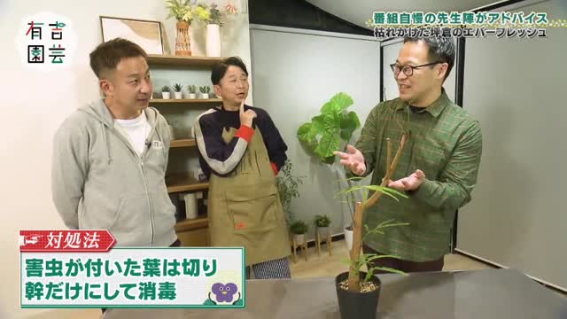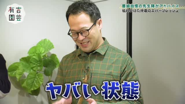 番組後半は、園芸に関するお悩みを先生が解決する「お悩み相談」のコーナー。今回の相談者は、アガベをプレゼンした我が家の坪倉さん。枯れかけてしまったエバーフレッシュについて、グリーンドクターの一島亮人先生に相談します。
