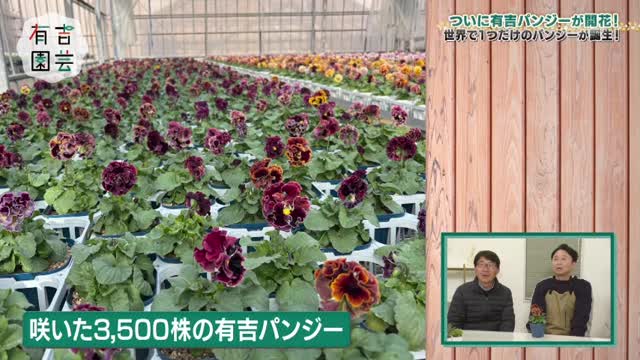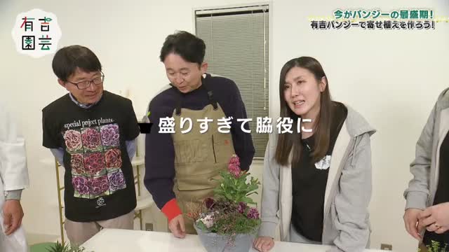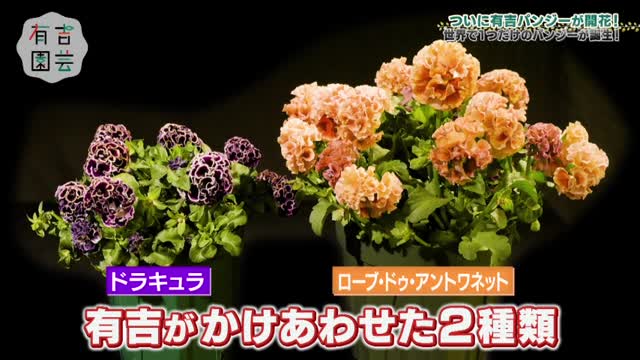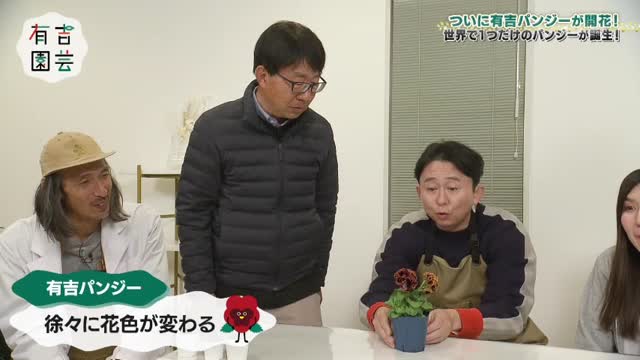 今回は、1年にわたるビッグプロジェクト「有吉パンジー」がついに開花!世界でひとつだけのパンジーが誕生します。さらに、完成した有吉パンジーを使って、園芸初心者の薄幸さんが寄せ植えに挑戦。今が旬のパンジーの楽しみ方を紹介します。