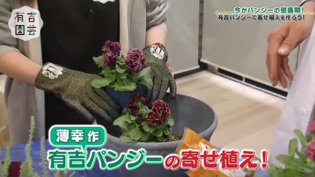 園芸初心者の薄幸さんが、有吉パンジーで寄せ植えに挑戦。今回はシックで大人なイメージの寄せ植えを目指します。