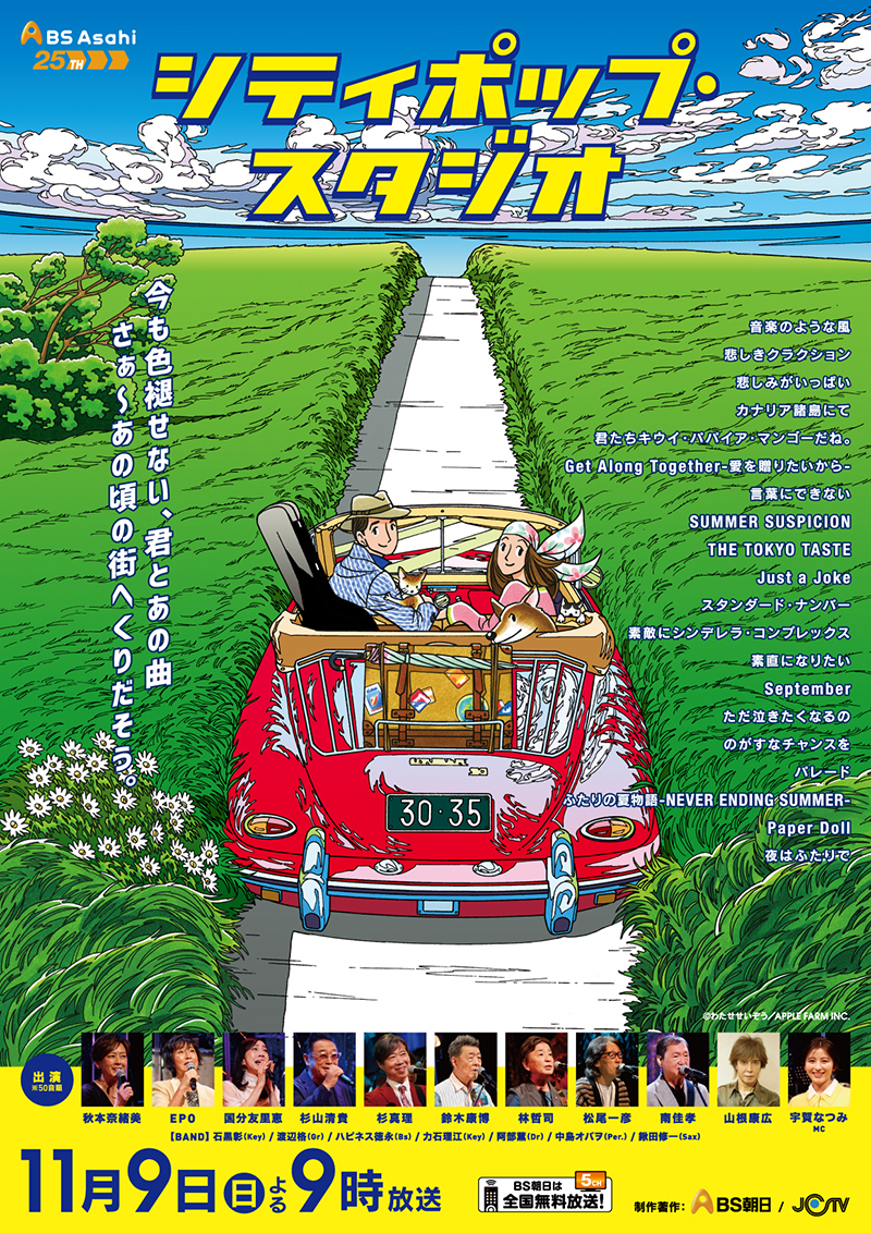 そんなシティポップを代表する、EPO、杉真理、林哲司、杉山清貴、国分友里恵など、全10アーティストが集結。スタンダードナンバーから“隠れた名曲”まで、全21曲をスペシャルバンドの生演奏と共にお届けする超豪華音楽番組「シティポップ・スタジオ」の第3弾。