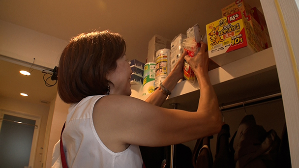 家全体を見て回ったやましたさんは、自分たち人間よりも犬が中心になっていると指摘。のぶえさんのクローゼットや備蓄品を置いているパントリーには犬の服や食べ物などがあり、リビングの片隅には9年前に亡くなったワンちゃんが使っていたモノが飾られています。