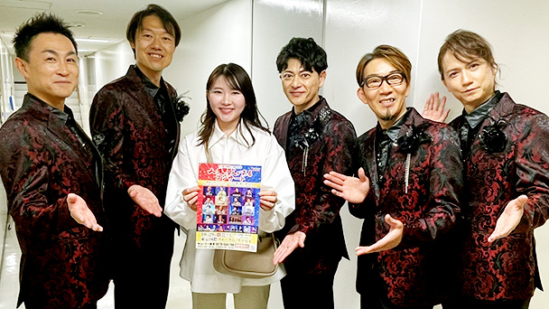 公演終了後にはメンバー全員と後輩社員が東京国際フォーラムで開催せれるコンサートのチラシを手に記念撮影!