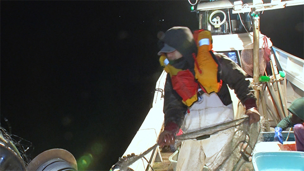 寒ビラメの刺し網漁にも密着。