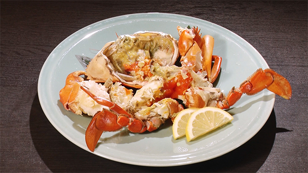 極上!寒ビラメの肝をつけて食べる!刺身&煮付けを堪能!漁で獲れたドウマンガニの蒸しも!