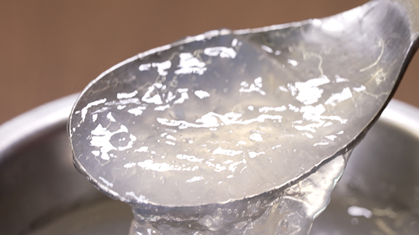 「ニンジャペースト」、固まる前のペースト状の蒟蒻だ。
