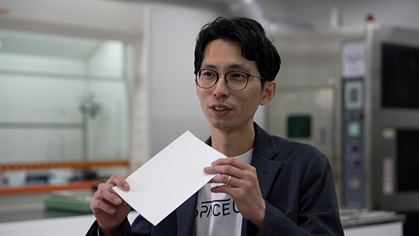 室内の温度を下げる素材を開発した。