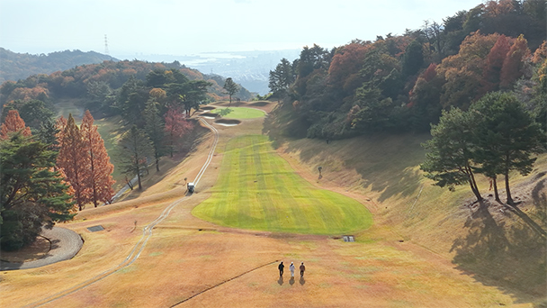 今回は「40mの打ち下ろし」「レストラン アラスカの絶品ランチ」「神戸の街並みから淡路島まで」「コース内唯一の右ドッグレッグ」の4つのテーマでお送りします。