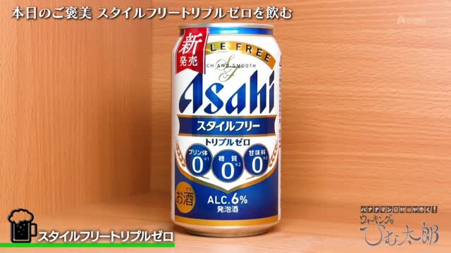アサヒビール本社内にある「ASAHI terrace」で、ウォーキングのご褒美をいただきます。今回いただくのは、新発売の「アサヒ スタイルフリートリプルゼロ」。糖質ゼロ、プリン体ゼロ、甘味料ゼロのトリプルゼロが特徴です。一口飲んだひむ太郎は「うまい!すっきりしてるし、まあ飲みやすいよ」と満足そうな表情でした。