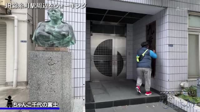 タワービュー通りを抜けた先で、ひむ太郎は「ちゃんこ千代の富士」を発見。店の前には千代の富士の銅像が立っており、ひむ太郎は「うわー、これかっこいいわ」と感動していました。