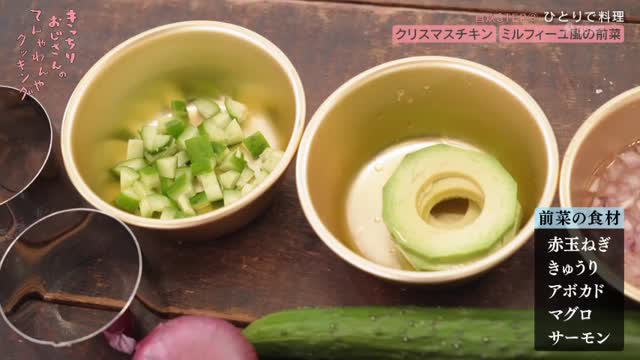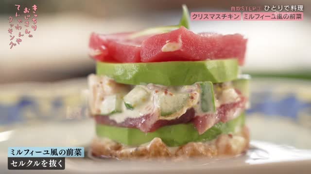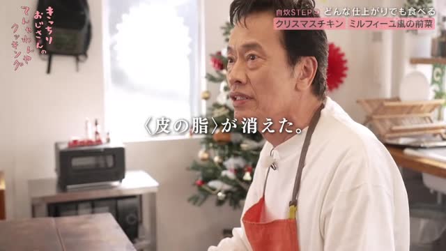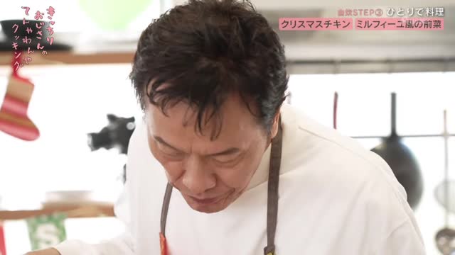 遠藤憲一さんが今回挑戦しているのは、クリスマス料理の定番「クリスマスチキン」と、彩り豊かな「ミルフィーユ風の前菜」。初めて作るというクリスマス料理にてんやわんやの大奮闘です。
