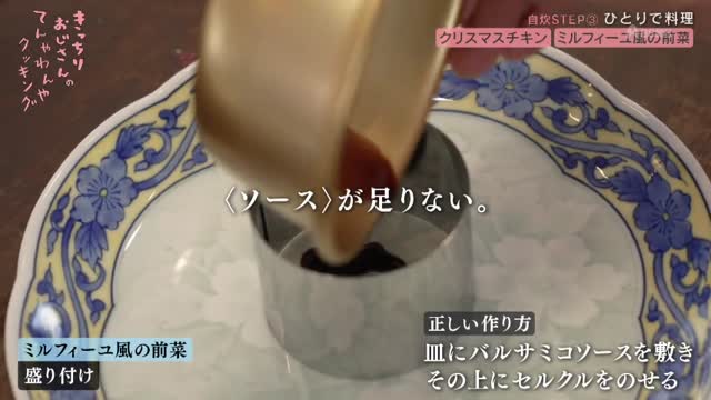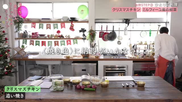 今回は、前回に引き続き、遠藤憲一さんが初めてのクリスマス料理に挑戦!定番の「クリスマスチキン」と、彩り豊かな「ミルフィーユ風の前菜」作りに挑みます。理想の焼き色を求めてオーブンと格闘したり、ソースのとろみ加減に頭を悩ませたりと、今回もてんやわんやの連続。果たして、無事にクリスマスディナーを完成させることはできたのでしょうか。