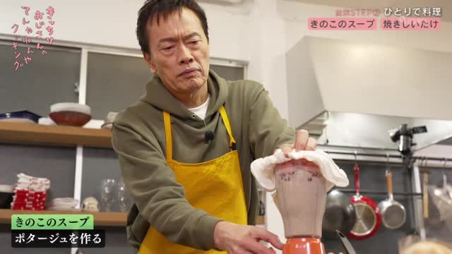 今回は、遠藤憲一さんが「きのこのスープ」と「焼きしいたけ」に挑戦。実はきのこにあまり興味がないという遠藤憲一さん。過去に作った「えのきのステーキ」の失敗を思い出し、不安げな表情を浮かべます。果たして、きのこの味を活かした料理を完成させることはできるのでしょうか。
