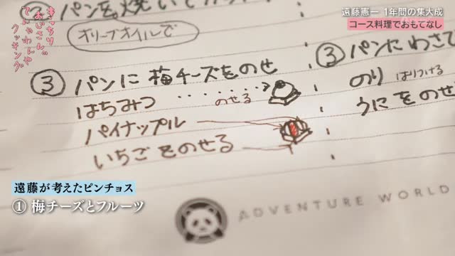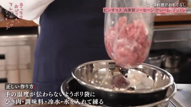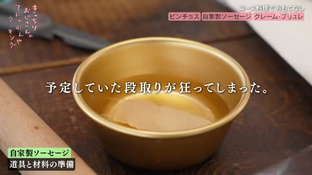 いよいよ2週間後に迫ったコース料理の本番。今回は初めてゲストを招いて料理を振る舞うということで、遠藤さんは「食に対して厳しい2人」を満足させることを目標に掲げます。気になるコースの献立は、前菜の「ピンチョス」、メインの「自家製ソーセージ」、デザートの「クレーム・ブリュレ」の3品。しかし、品数は3品でも、その内容は一筋縄ではいかないものばかりでした。