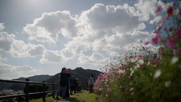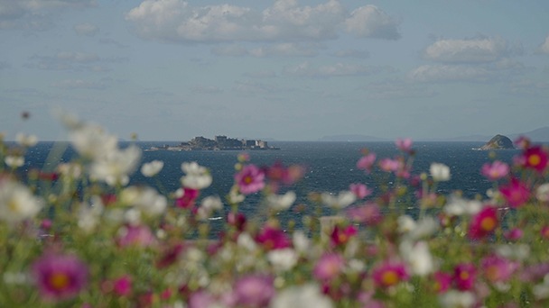 長崎県長崎市の南部に位置する・野母町。かつて石炭産業で栄え、5,000人以上の人々が暮らした島、端島(通称軍艦島)を望む丘があります。今年、地元の団体がこの丘にコスモス畑をつくる活動をはじめ、色鮮やかなコスモスが咲き誇りました。活動には、端島の元島民も参加しています。島の記憶を繋ぎ、多くの人に知ってほしい。そんな願いが込められたコスモス畑です。