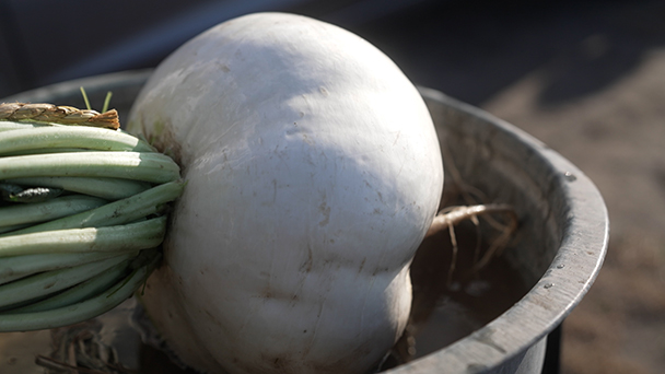 鹿児島のシンボル・桜島には、1月から2月にかけて収穫される伝統野菜「桜島大根」があります。火山灰の土で育つ大根は、直径40センチほどにもなる大きさと、甘みの強さが特徴です。毎年、鹿児島の青果市場では、子どもたちが育てた桜島大根が競りにかけられます。子どもたちに鹿児島の食文化に触れてほしいという願いから、20年以上前から続いています。臨場感あふれる競りの場に立つ、子どもたちの表情を見つめます。