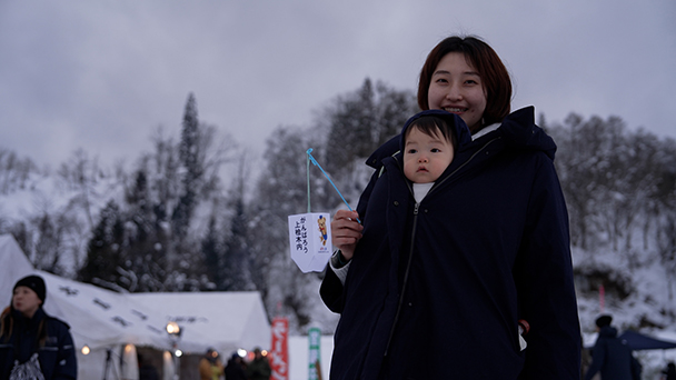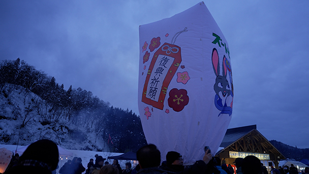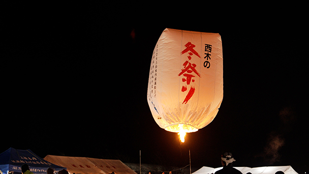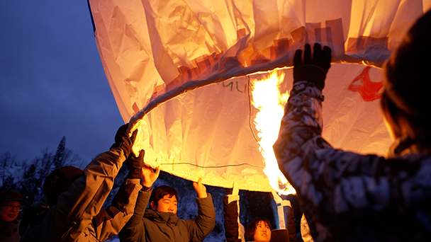 秋田県仙北市の上桧木内地区で行われる冬の行事、紙風船上げ。