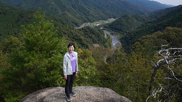 「笠置寺」では、巨大な一枚の岩に刻まれた弥勒磨崖仏を拝観。特別にその頭上に上らせてもらい、仏様の視点から山々を見渡す絶景に感動します。