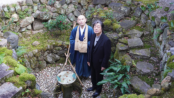 毎年恒例「京の冬の旅」では、武将で茶人の古田織部ゆかりの寺院へ。大胆なデザインの蹲踞(つくばい)や襖絵、丹念に手入れされた苔庭、そして限られた期間だけしか見られない日本最大級の貴重な文化財も拝見。