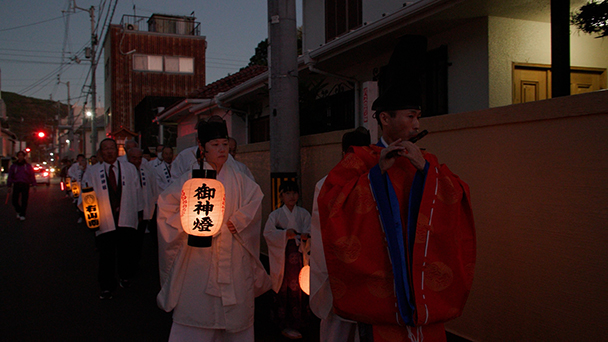 宵宮祭で行われる提灯行列はとても厳か。