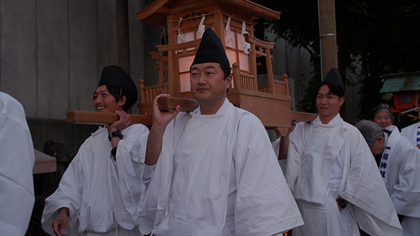 各地区の代表者と一緒に街を練り歩き、一條神社へと運ばれます。