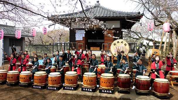 石戸蒲桜(いしとかばざくら)を太鼓で力強く表現し、