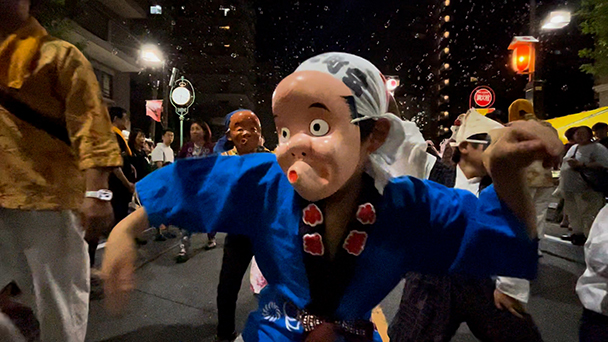 今回のまつりびとは「ふなばし市民まつり」の ばか面(めん)おどり・大根田友之さん。 昭和43年(1968年)に「産業まつり」として始まって以来、 50年以上にわたり親しまれている「ふなばし市民まつり」。 名物のみこし、よさこいなど、華やかな演目がまつりを盛り上げる一方、 この祭りに欠かせないのが船橋の漁師町(現在の湊町と本町の一部の地域)の 人たちに代々受け継がれてきた郷土芸能「ばか面おどり」です。 明治20年代後半から30年代初めにかけて疫病が発生、海難事故や不漁も続き、 地元の漁師たちが厄払いを願って発祥したコミカルな踊りです。 「ばか面おどり」には笑い面・怒り面・ひょっとこ面・おかめ面・天狐(てんこ)の 面があり、地元では人形焼になるほど身近な存在となっています。