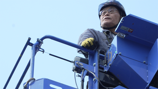このイルミネーションを第1回から手掛け、 地元で50年以上、看板の製作・設置を行っている古賀巖さん。 これまでに数多の看板や電飾を作ってきましたが 巨大イルミネーションだけは一筋縄ではいかないと言います。 壁に装飾されるデザインは、子どもたちが描いた絵。 イメージを崩さないよう仕上げるのが難しく、 壁面への下書きも許されないため ライトを数メートルつけてはバランスを確認 1カ月かけて完成させます。 はたしてその出来栄えとは!? 毎年、地元の方に喜んでもらえる事を やりがいにしている巖さんの祭スイッチに迫ります!
