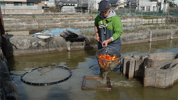 金魚を育てている東川将篤さん。