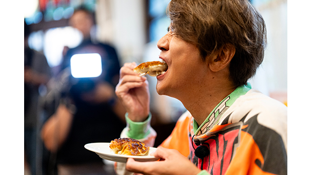 お店に到着するやいなや、明るいうちからビールと餃子を注文。「これが一番いいところ!」と素直な喜びを口にする姿は、大スターのオーラを忘れてしまうほど。食レポは苦手と語りつつも、的を射た表現で美味しさを伝えます。