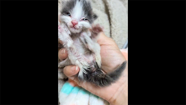 2025年11月、ある地域で生後4ヵ月の保護ネコが引き取られた。発見当初、その子ネコは呼吸もままならない瀕死の状態で、命が危ぶまれるほど衰弱していた。この小さな命を救ったのは、見知らぬ人たちの温かい連携だった。最初に子ネコを発見した住民は動画を参考に懸命に介抱、さらにSNSで繋がっていた動物保護活動家に連絡を取り、深夜に命のバトンを託した…
