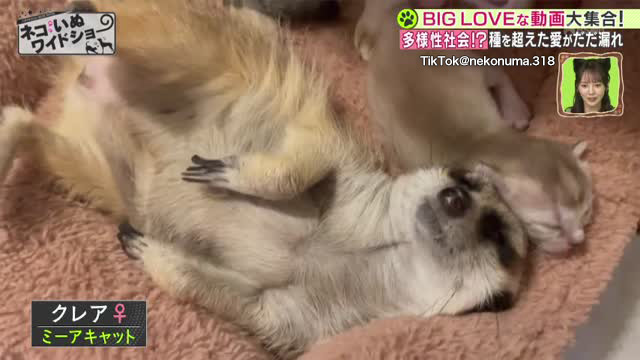 ▼子ネコ猫とミーアキャットを分け隔てなく育てる