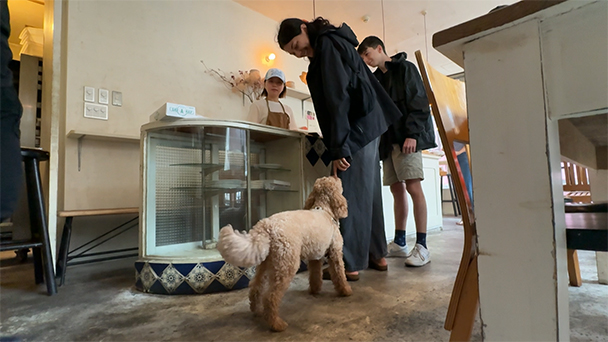 お店の人気商品「ゴロゴロチーズフラン」から「ゴロチ」と名付けられたワンちゃんは、お店のムードメーカーで、来店したお客さんへのお手やキスにも動じない接客はもちろん、特技はなんと「お辞儀」!「ありがとう」の声に伏せをして頭を下げるその姿は、まさに”神接客”。ゴロチの存在がお店と人を繋ぎ、みんなを笑顔にする働きぶりに密着!