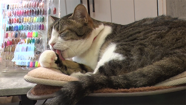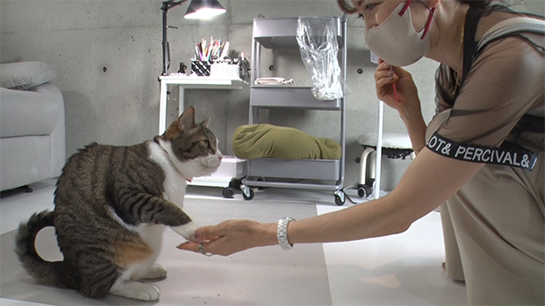 【コーナー③:瀕死の状態から助けだされた3本足の看板ネコ】 どんなネコにも、歩んできた道のりがある。その道を、ちょっと紐解くcat history「ネコの足あと」。 今回は愛知県名古屋市のネイルサロンで働く、3本足の看板ネコ。その愛らしい姿で客を癒やしていますが、過去には壮絶な道のりが。6年前、瀕死の状態で保護されたポッキーくん。前足の傷は無残なもので、命の危機に瀕していた。それでも飼い主さんは足を残そうと懸命に治療したがうまくいかず、感染症を防ぐため苦渋の決断で足の切断手術を受けたが… 逆境を乗り越え、今やお客さんや店主に活力を与える、3本足の看板ネコと、必死の思いで救った飼い主のヒストリーをお届けします。