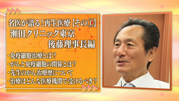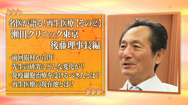 そこで「名医に聞く!再生医療」第二弾となる今回は「がん免疫細胞療法」「毛髪再生治療」「歯髄再生治療」の3つに注目し、各分野の専門医による実際の治療について取材!