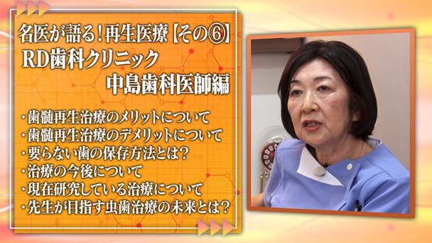 「名医に聞く!再生医療~がん、薄毛から歯髄治療まで~」は放送終了後、期間限定で無料配信をしております。