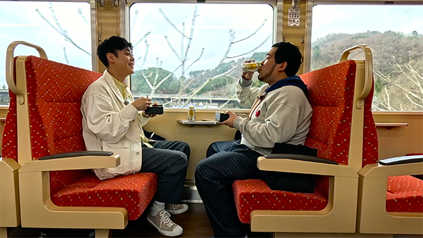 気のおけない関係の2人が日常を離れ、絶景列車でハイボールを楽しみながら、普段話せない事を語り合う旅 。今回は令和ロマン・松井ケムリとラパルフェ・都留拓也が三陸鉄道リアス線へ 。学生時代からの縁ながら、サシで飲むのは初めてという2人 。美しい海を望む安家川橋梁などの絶景を肴に、名物「ウニ弁当」を味わいながら、お笑いを志した意外な理由や旧知の間柄だからこそ話せる思い出を語り合います 。