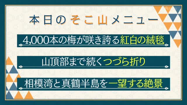 今回は、本上まなみさんがゲストの工藤阿須加さんと共に、神奈川県湯河原町にある幕山(まくやま)と南郷山(なんごうさん)を縦走します。工藤さんの番組「農業はじめちゃいました」とのコラボスペシャルとして、まずは、梅の名所として知られる幕山の絶景を楽しみながら山頂を目指します。