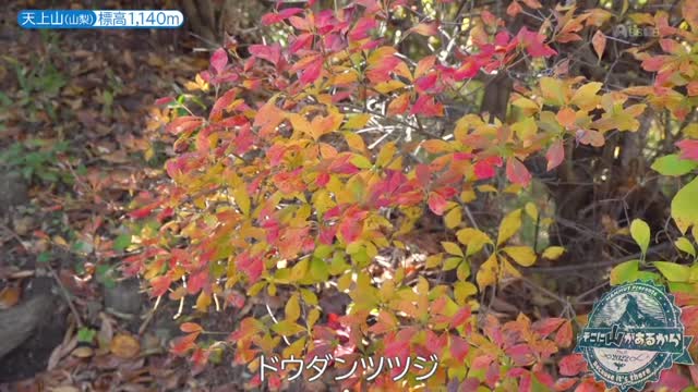 登山道は、場所によって紅葉の色合いが変化します。登山道の右側には、陽差しを浴びて輝くような黄色、その反対側には、鮮やかな赤に染まったドウダンツツジがトンネルのように続く道も。南沢さんは「全然色が違う」「2色のドウダンツツジに囲まれて歩いていきます」と、色彩豊かな道のりを楽しみながら進んでいきました。