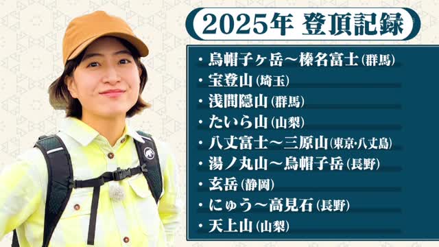 2025年は、雪山への初挑戦や桜、紅葉登山など、四季折々の山を楽しんだ南沢さん。烏帽子ヶ岳から天上山まで、数々の山に登頂しました。