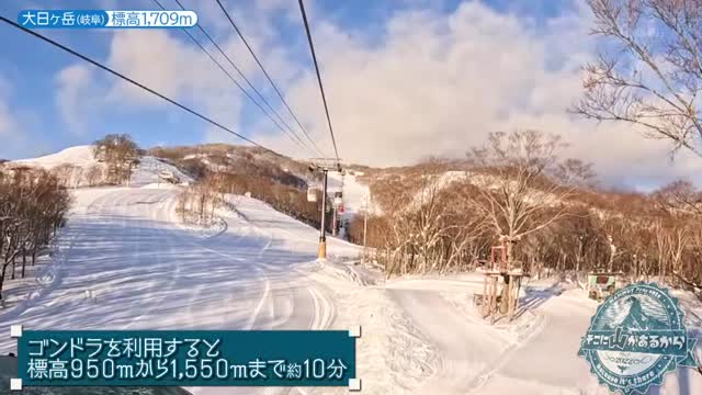 今回の登山のスタート地点は、西日本最大級のスキー場「タカスダイナ」。ここからスキー場のゴンドラを利用し、標高950mのSPゴンドラ山麓駅から標高1,550mのSPゴンドラ山頂駅まで、約10分間の空中散歩を楽しみます。ゴンドラを使わない場合は大日ヶ岳の山頂まで約3時間かかるところを、半分に短縮できるため、快適なスタートとなりました。