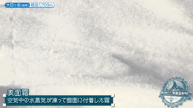 スノーシューを装着し、いよいよ登山道へ。金子さんは、フライの衣のように太陽の光を浴びてキラキラと輝く「表面霜」や、綿菓子のように軽い雪質に驚きの声を上げます。雪の上には動物の足跡が残り、木々の枝はまるで鹿の角のように凍りついていました。ふかふかの雪を踏みしめる感触を楽しみながら、白銀の森を進みます。