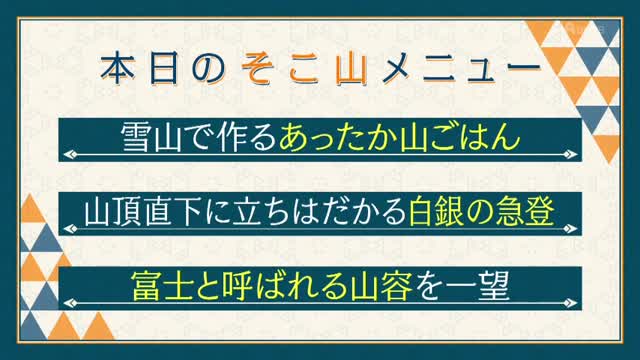 南沢奈央さんが、前回に引き続き、栃木県那須塩原市にある新湯富士(あらゆふじ)の雪山登山に挑戦。スノーシューを履いて深い雪道を進み、山頂を目指します。山中で味わう温かいグルメや、富士の名にふさわしい美しい山の姿など、冬山ならではの魅力が満載の登山を紹介します。