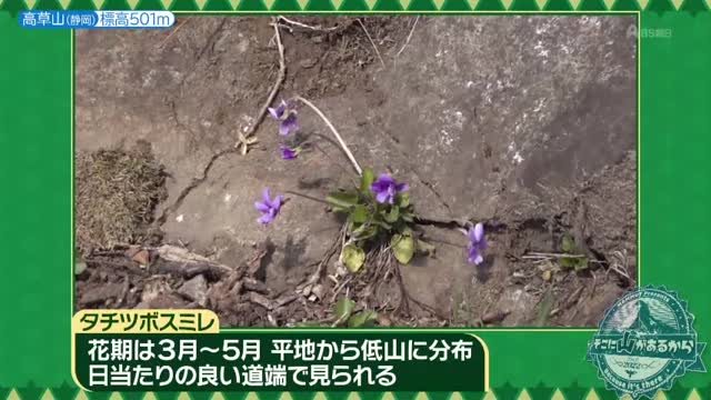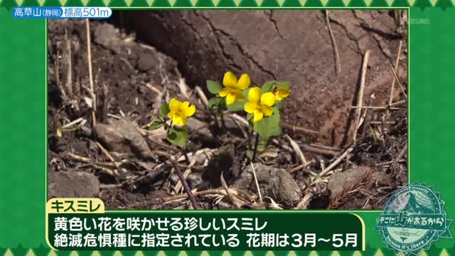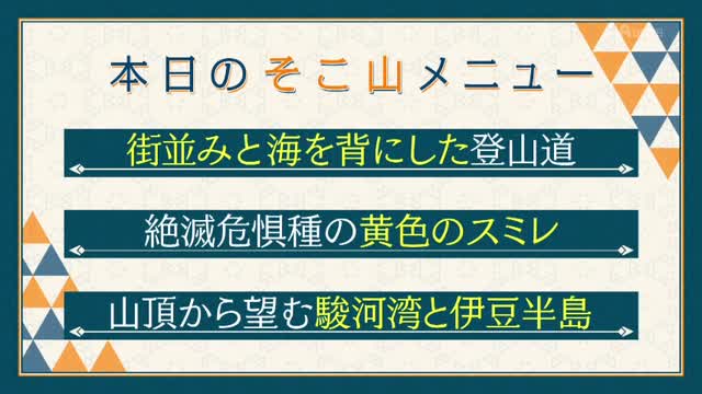 今回は、静岡県焼津市の高草山を登った南野さん。スタート地点から続く絶景の登山道、そして絶滅危惧種にも指定されるキスミレやコシノコバイモといった希少な花々との出会いを満喫しました。山頂からは駿河湾や伊豆半島を望む大パノラマが広がり、大満足の登山となりました。次回は、ここから高草山と同じく焼津アルプスの一角にある満観峰へと縦走します。