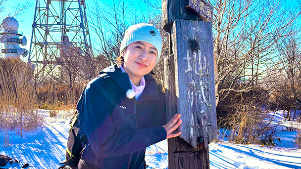 南沢奈央さんが挑むのは、群馬県に位置する赤城山の「地蔵岳」から「長七郎山」への縦走です。 日本百名山の1つにも数えられる赤城山は、標高1828m の黒檜山を主峰に、駒ヶ岳や地蔵岳、長七郎山などからなる、カルデラ湖を含む複成層火山です。 2週にわたってお送りする前編では、標高 1674m の地蔵岳を目指します。 山頂に並ぶ電波塔が目印で、赤城山随一の開けた眺望が楽しめる山です! 赤城神社で2026年の祈願をしてから登山を開始。今回の登山コースは、登山口から山頂部まで、標高差およそ300m続く急登が特徴です。南沢さんはチェーンスパイクを履き、降り積もった真っ白な雪道を悪戦苦闘しながら登っていきます。 そして山頂に到着すると、谷川岳や朝日岳、武尊山、至仏山などの名峰のほか、カルデラ湖の小沼や黒檜山を一望することができました。 地蔵岳(じぞうだけ) 群馬県前橋市 標高:1674m