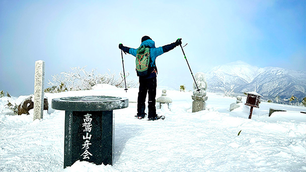 今回、金子貴俊さんは岐阜県にある「大日ヶ岳」に挑戦します。 大日ヶ岳の登山は、この時期ならではのメリットが2つあります。 1つはスキー場のゴンドラが稼働するため600m上がることができ、登山時間を半分に短縮できること。 そしてもう1つは、積雪時に大日ヶ岳の山頂から隣の山まで稜線歩きが可能になること。しかも「360度遮るものがない区間」があり、絶景の稜線歩きを楽しむことができます。 2週に渡ってお送りする前編では、大日ヶ岳の山頂を目指します。 まずはゴンドラに乗り、600mをわずか10分で移動。到着すると目の前に御嶽山、乗鞍岳、穂高連峰といった北アルプスの名峰が広がります。 雪質もふわふわのパウダースノーで、スノーシューを使った雪山登山をより楽しませてくれます。そんな道中では中央アルプス最南端に位置する日本百名山の恵那山を望め、さらに「彩雲」という自然現象を見ることができました。 そして山頂で待っていたのは白山連峰、さらにはその最高峰「御前峰」の姿も見ることができました。この時期にしか見ることができない一面の白銀世界、そして高くそびえる名峰の数々。そんな絶景をぜひご覧ください! 大日ヶ岳(だいにちがたけ) 岐阜県郡上市(ぐじょうし)・高山市 標高:1709m